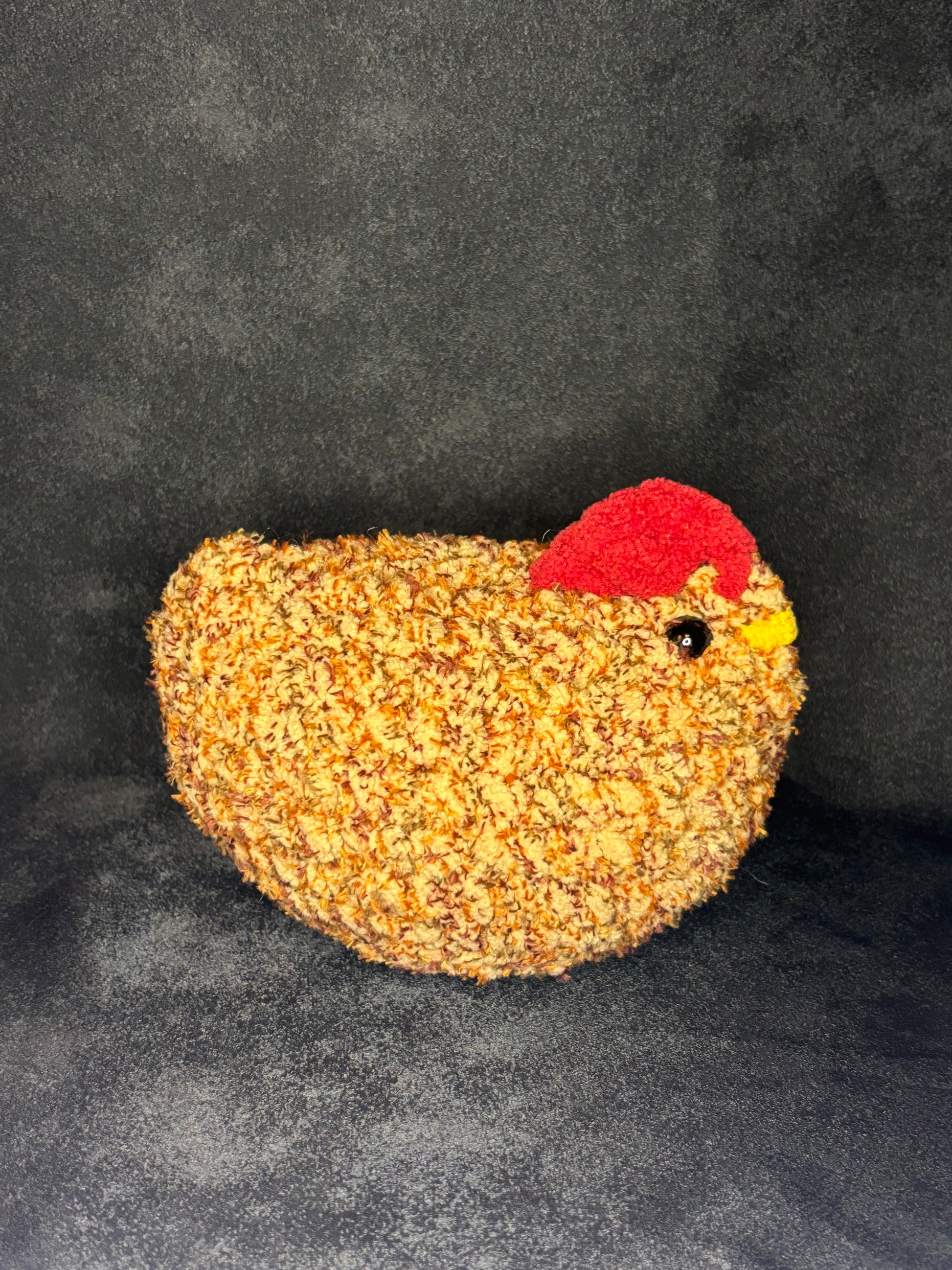 This Chicken plushie is the cutest one you will ever see! These plushies are 6.5 inches long( from head frill to the tail), and 4.5 inches wide( from side to side) and 4 inches tall( from head frill to the bottom of the plushie), and this plushie is looking for a forever home.