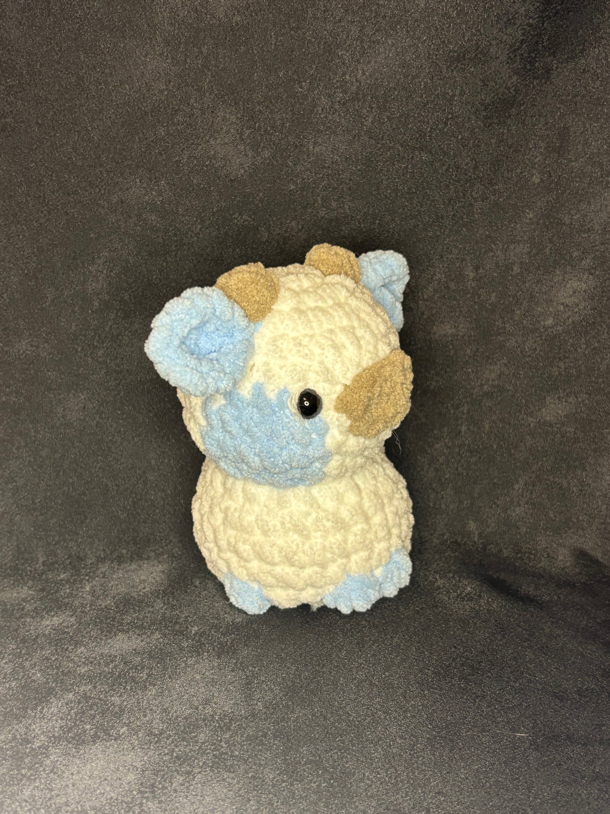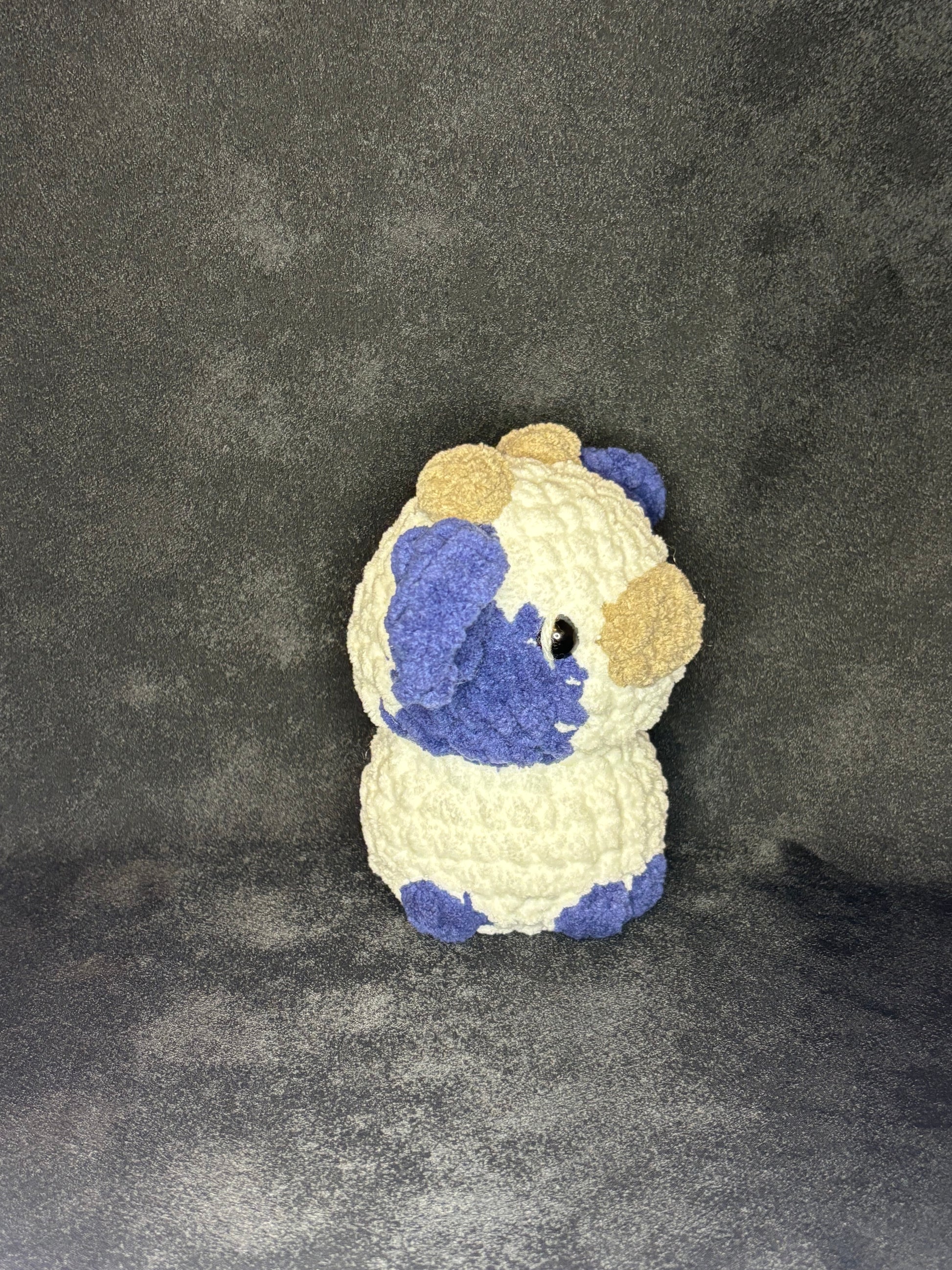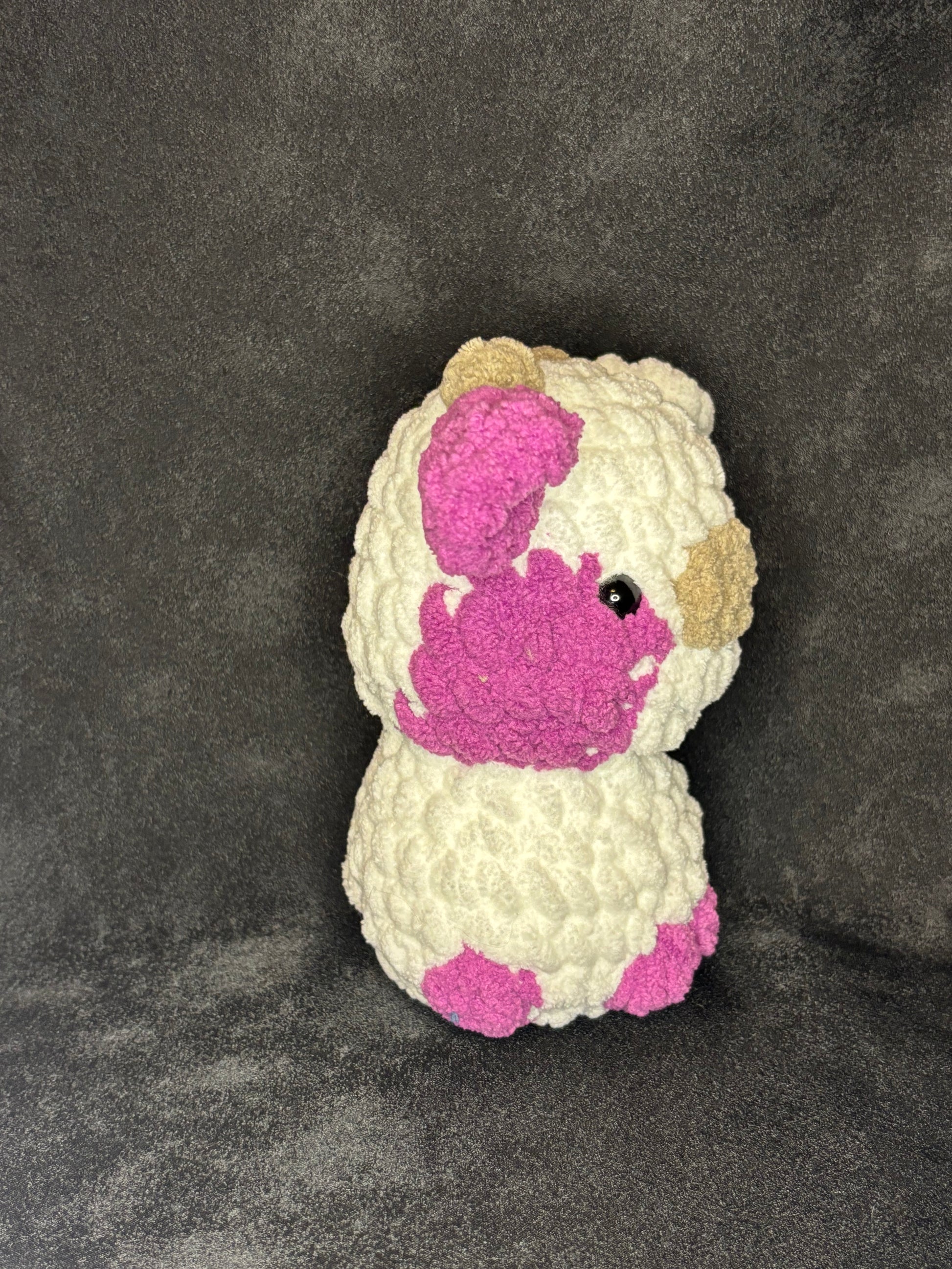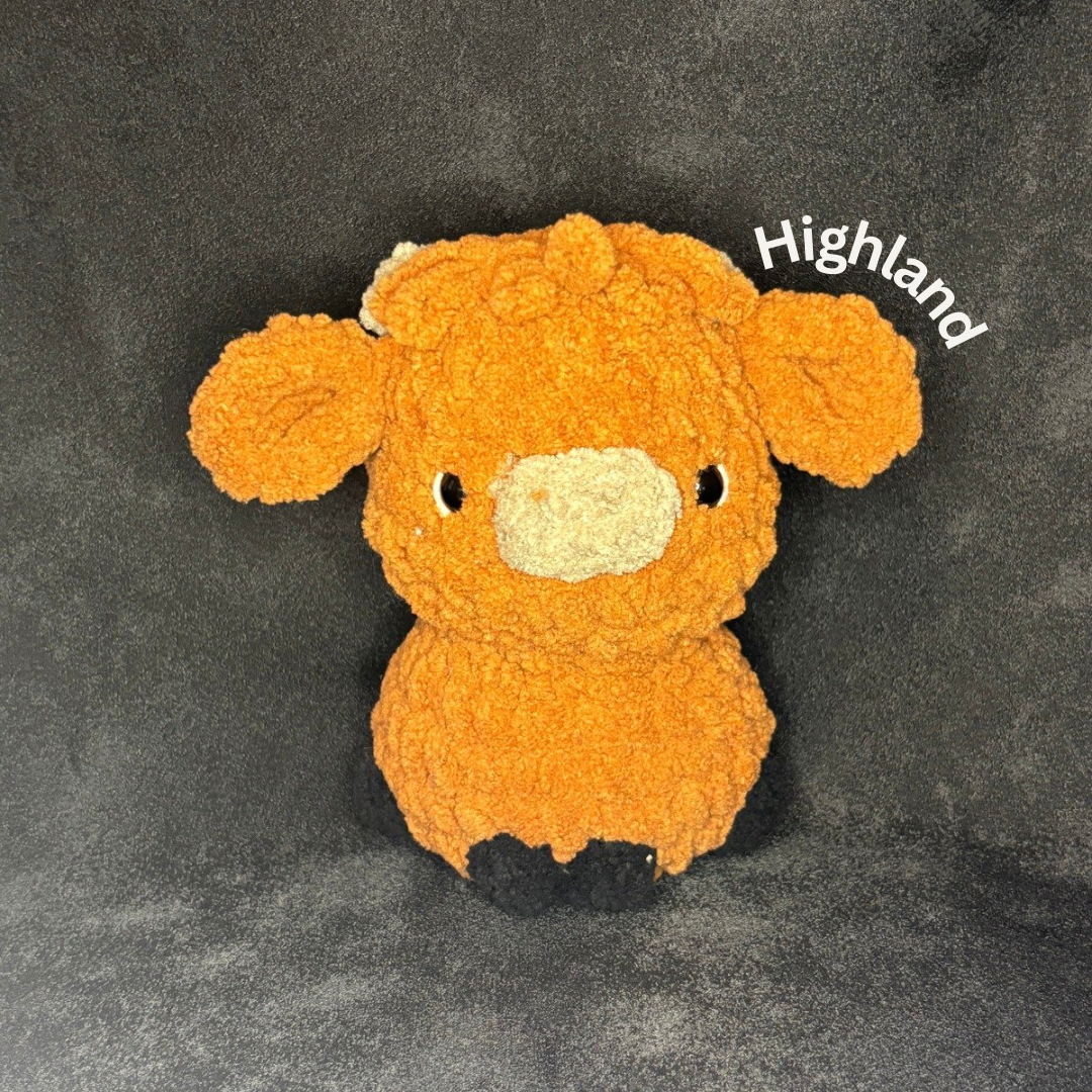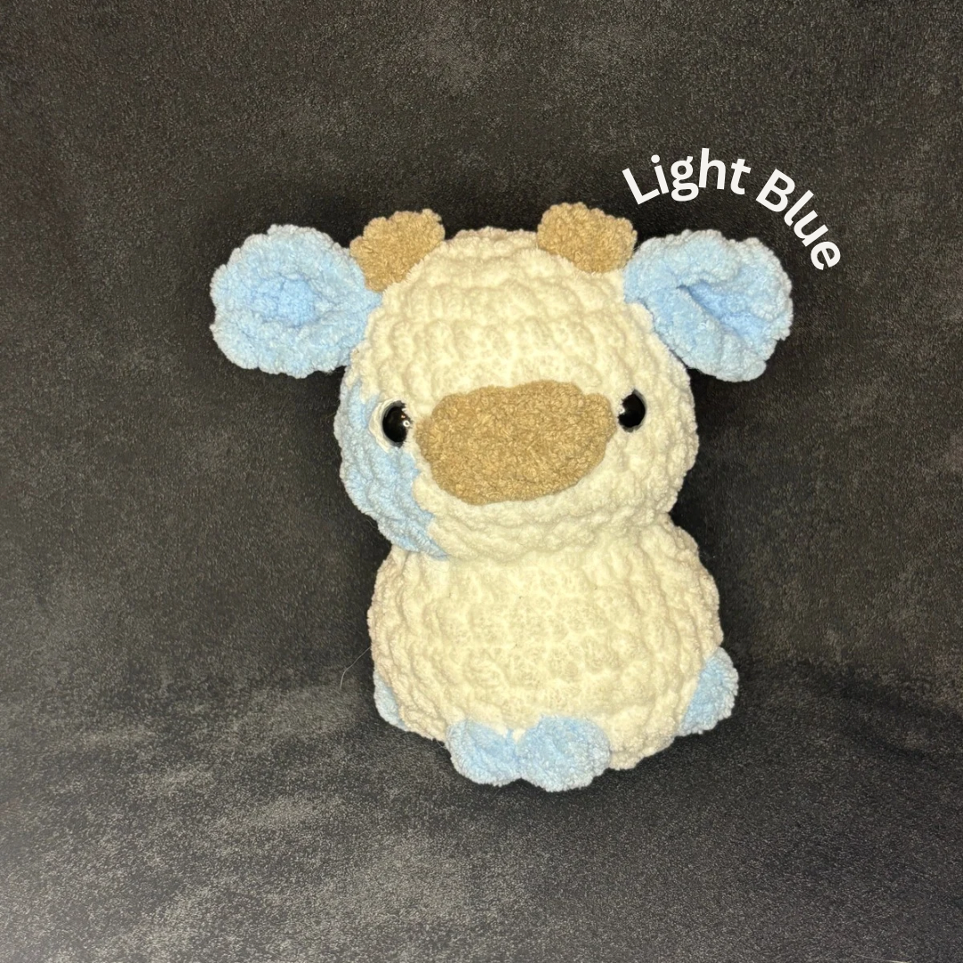 This Cow plushie is the cutest one you will ever see! These plushies are 4 inches long( from the nose to the back of the head), and 7 inches wide( from side to side) and 6.5 tall(from top of the horns to bottom of the body) and this plushie is looking for a forever home.