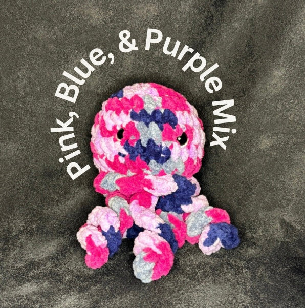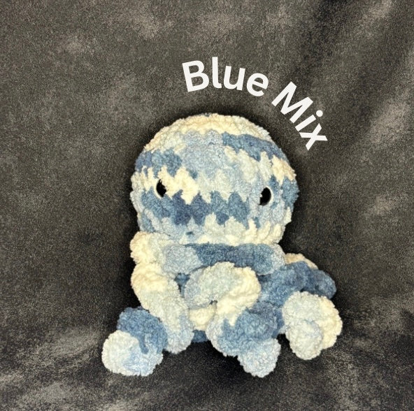 This Jellyfish plushie is the cutest one you will ever see! These plushies are 5 inches long( from head to back of the head), and 6 inches wide( from side to side) and 7 tall(from top of head to bottom of the tentacles ) and this plushie is looking for a forever home.