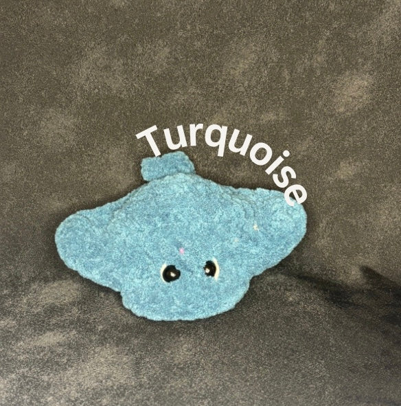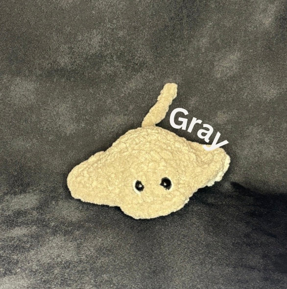 This Mini Stingray plushie is the cutest one you will ever see! These plushies are 7 inches long( from head to end of the tail), and 7 inches wide( from side to side) and 3 tall(from top of belly to bottom of the belly) and this plushie is looking for a forever home.