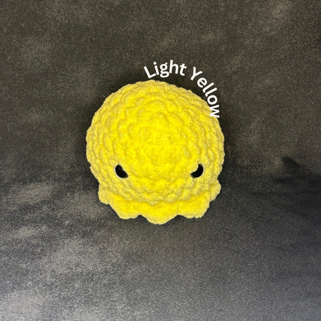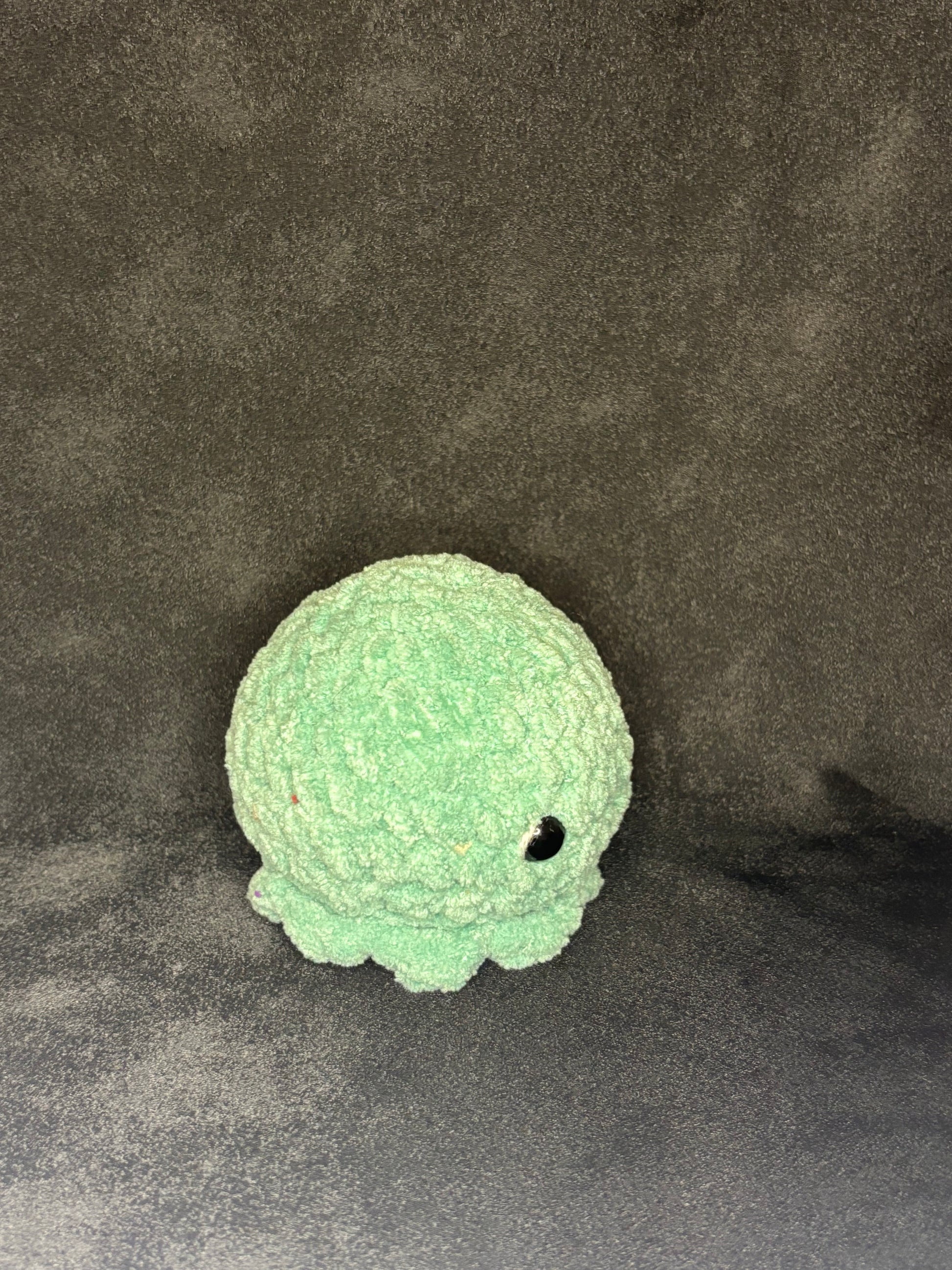 This Octo plushie is the cutest one you will ever see! These plushies are 4 inches long( from front of head to the back of the head), and 4 inches wide( from side to side) and 4 tall(from top of head to bottom of tentacles ) and this plushie is looking for a forever home.